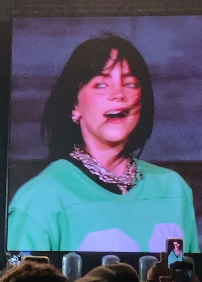 O show de Billie refletiu sua animação por pisar pela primeira vez em solo brasileiro. A artista até chegou a comentar seu carinho especial pelos fãs brasileiros, pelo país a ter recebido primeiro como artista logo no começo de sua carreira. Além disso, enquanto cantava, Billie passou imagens no telão do aumento de desmatamento e queimadas na floresta Amazônica ocorridas no último governo presidencial, de Jair Messias Bolsonaro.